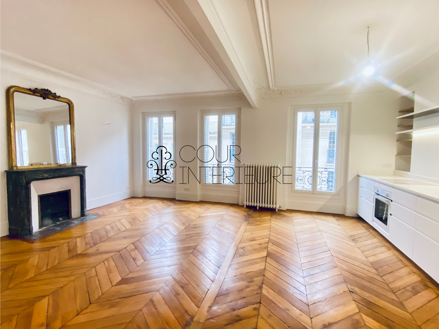MEUBLÉ – Rénovation totale – 1 chambre – Paris 8ème – 48 m2 + 3 balcons sur cour et courette – Rue Chambiges (Triangle d’or / Pont de l’Alma) – 5ème étage avec ascenseur – Loyer charges comprises : 2.500 euros (climatisation intégrée)
